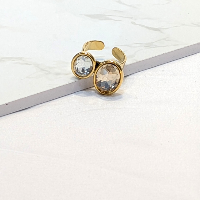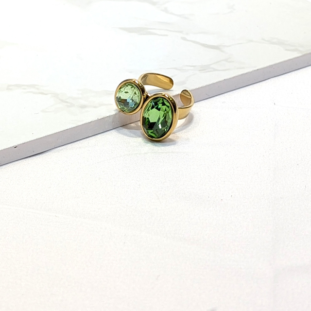 Découvrez cette magnifique collection de bague avec sa pierre aux reflets intense en acier inoxydable doré.