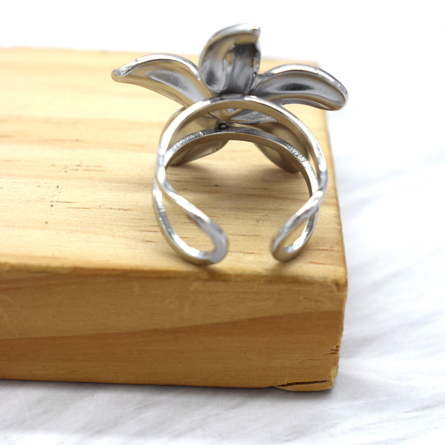 Bague fleur réglable en acier inoxydable.