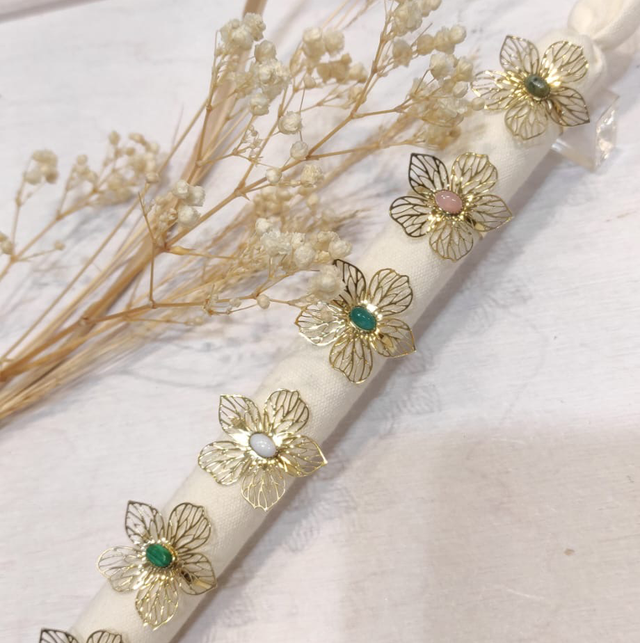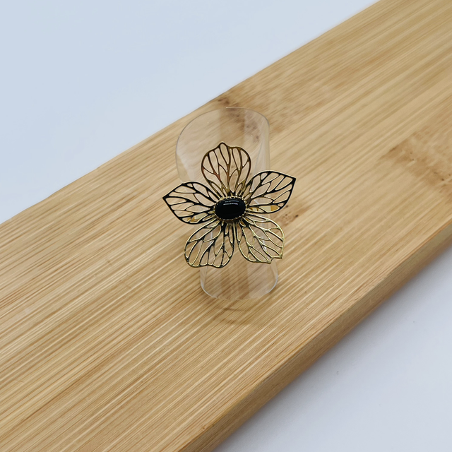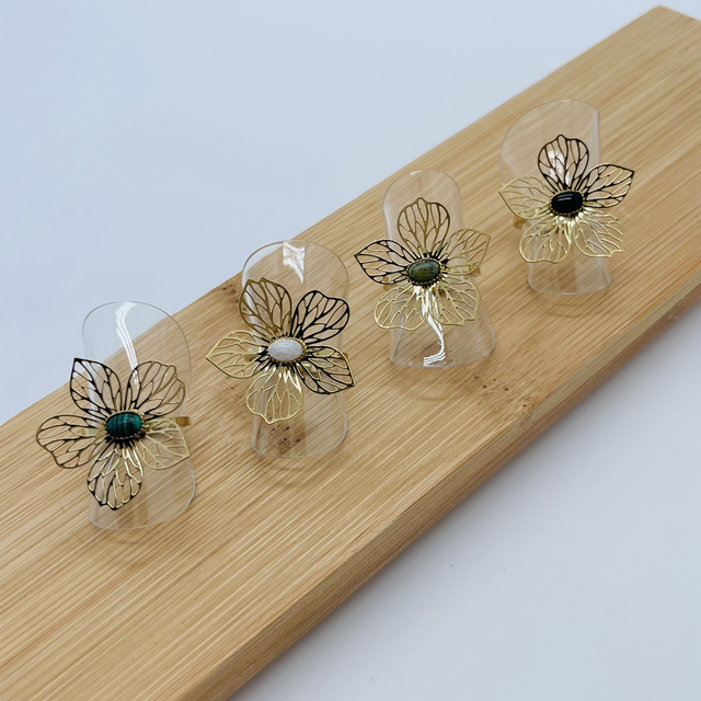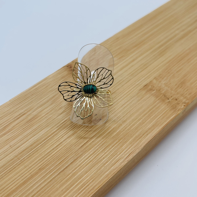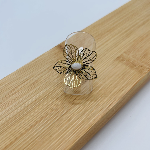 Bague fleur pierre véritable réglable
