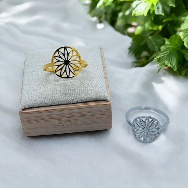 Bague fleur en acier inoxydable réglable.