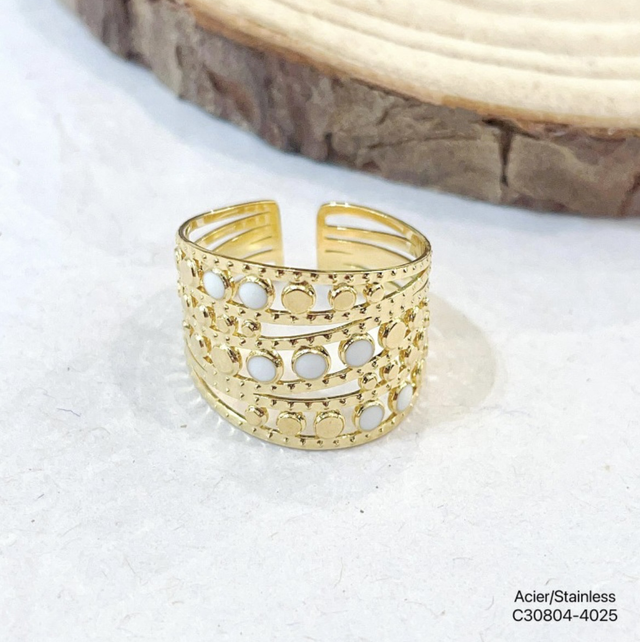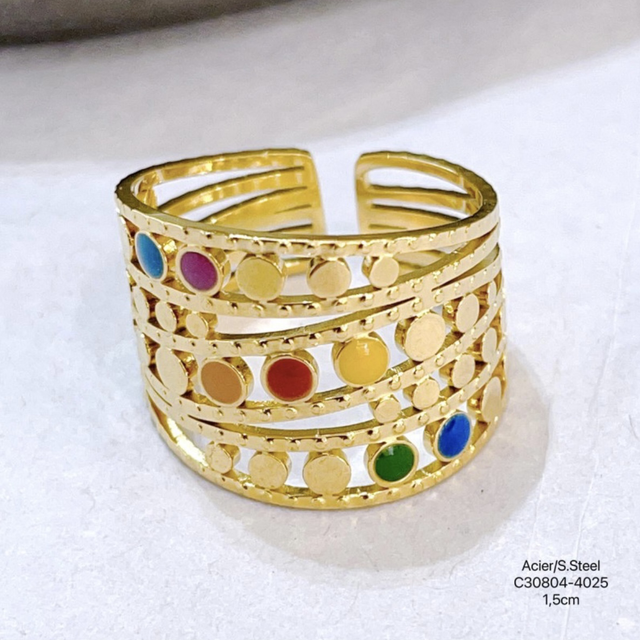 Bague émaillée large réglable en acier inoxydable doré.