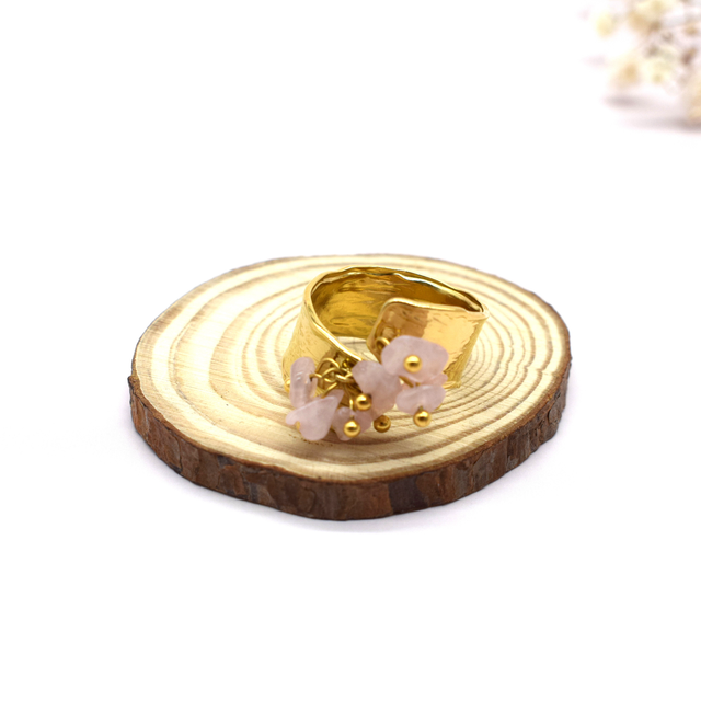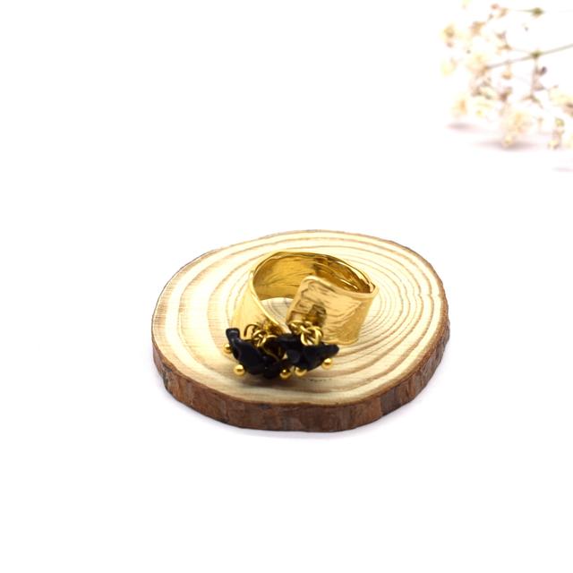 Bague large en acier inoxydable doré avec pampille pierre.