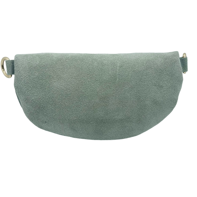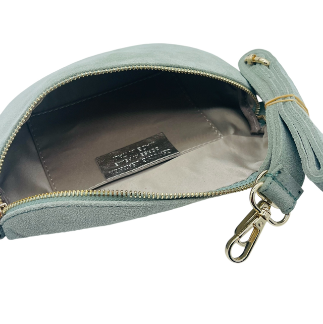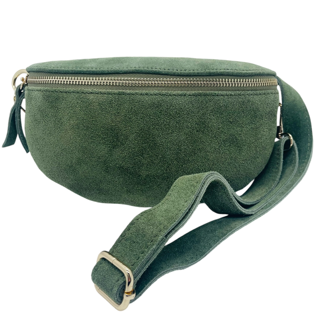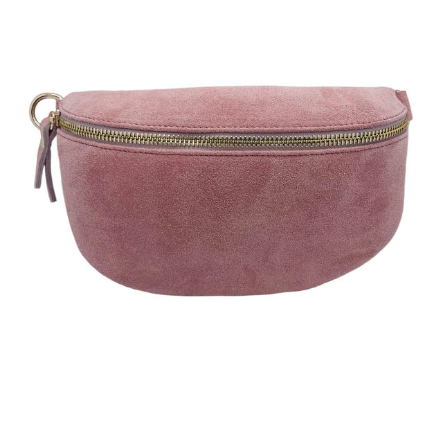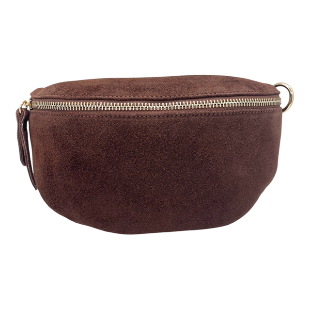 Banane en cuir daim avec zip doré avec lanière assortie.