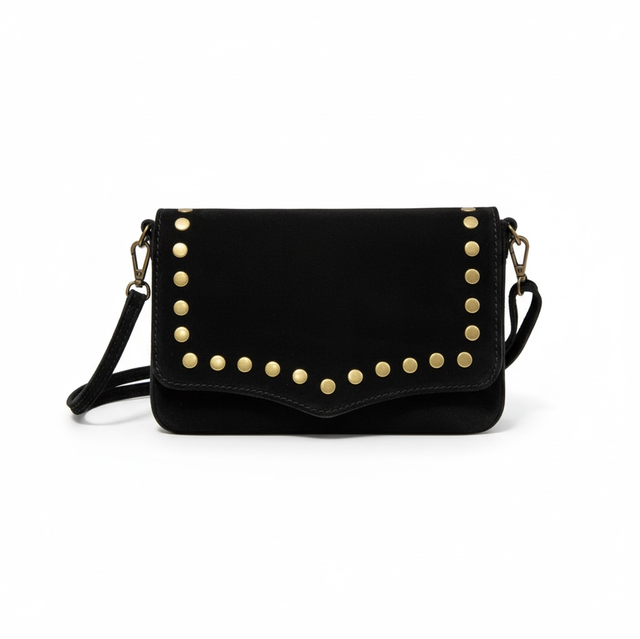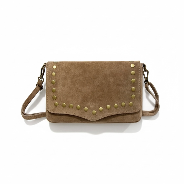 Besace en cuir daim avec rabat clouté