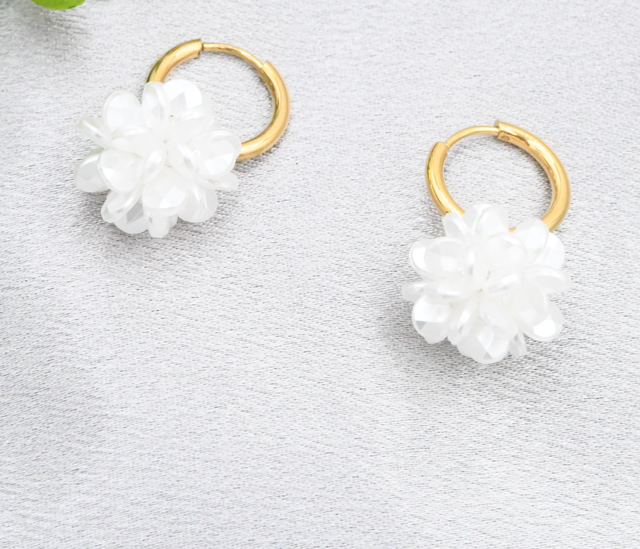 Boucle créole fleur nacre en acier inoxydable.