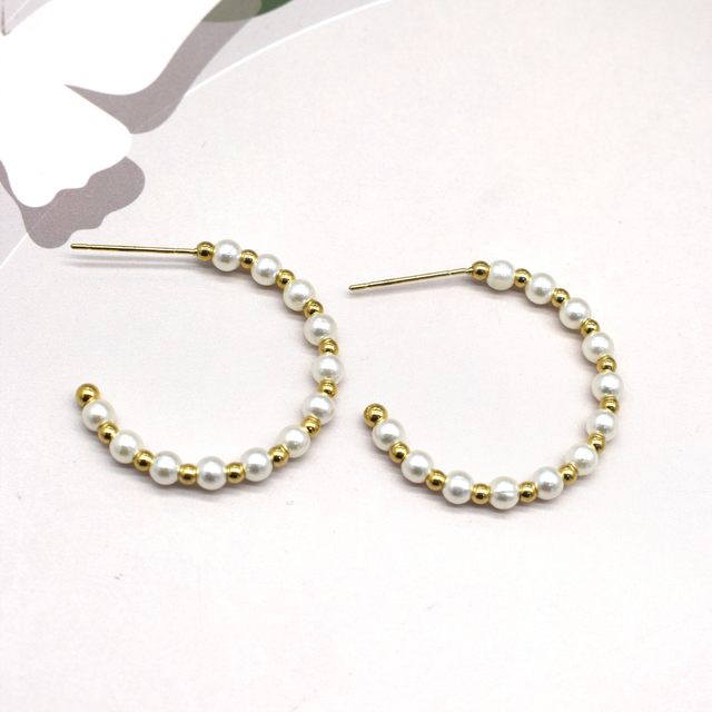 Boucles d’oreilles, créole, ouverte, perles blanche en acier inoxydable.