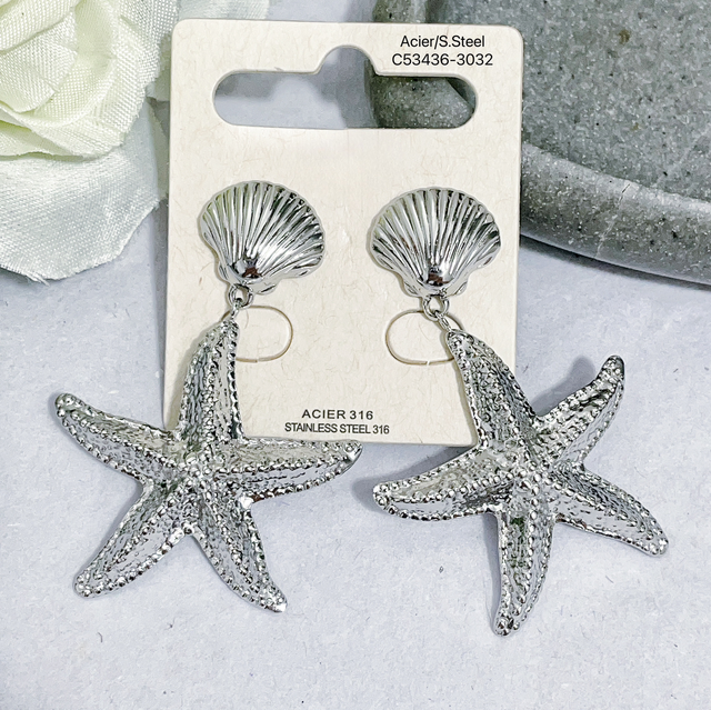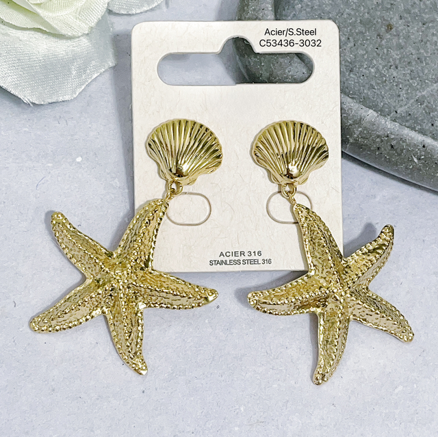 Boucle pendante étoile de mer avec coquillage en acier inoxydable.