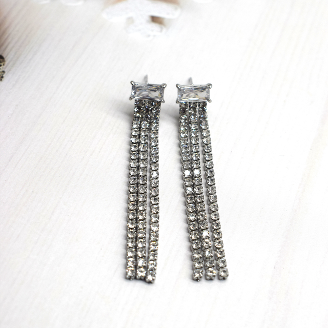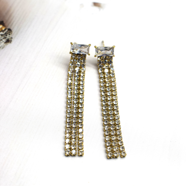 Boucle pendante strass 3 rangs en acier inoxydable.