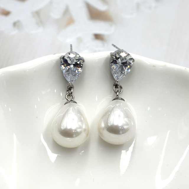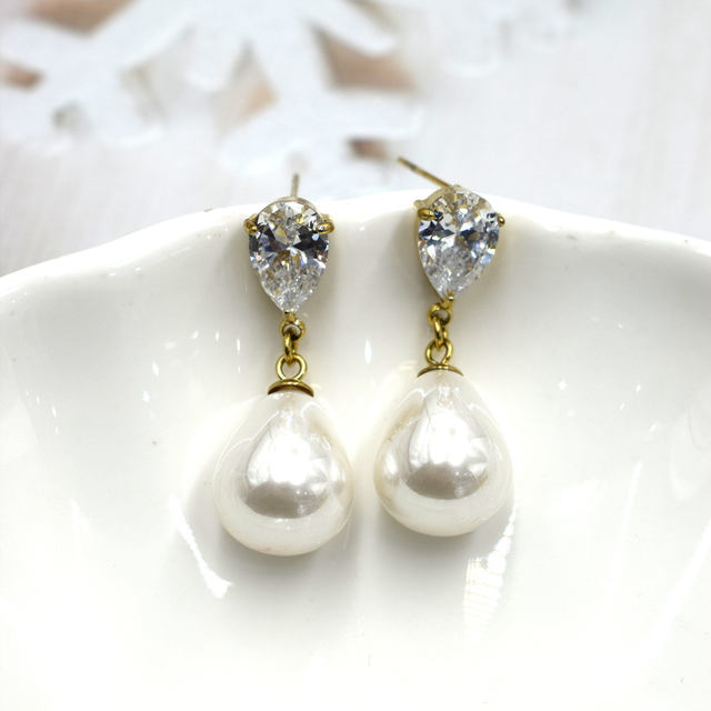 Boucle avec perle nacré à puce avec strass en acier inoxydable.