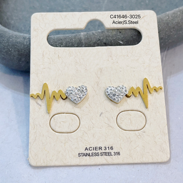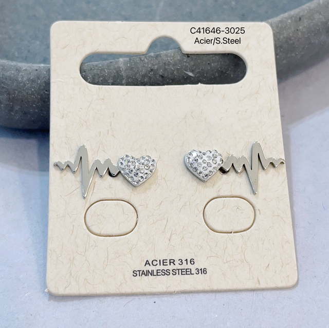 Boucles d’oreille puce rythme cardiaque en acier inoxydable.