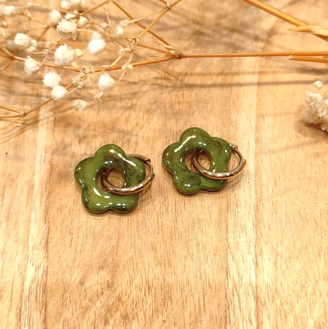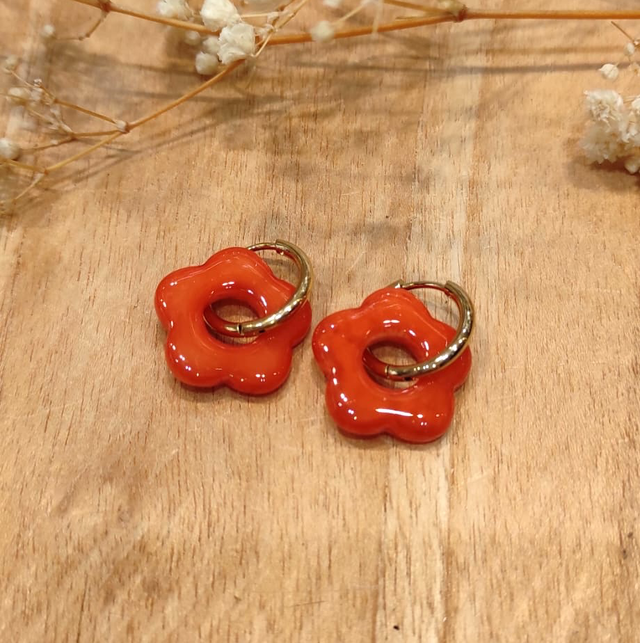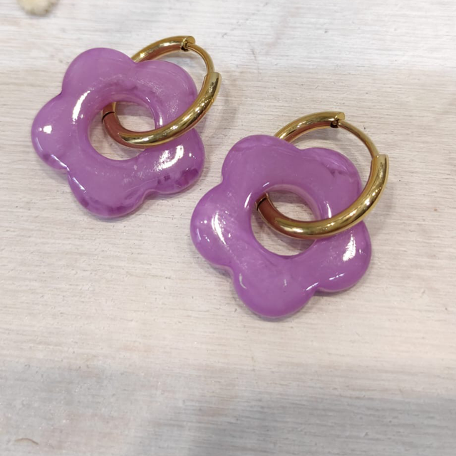 Boucles d’oreilles créole acrylique Flora 5 pétales en acier inoxydable doré.