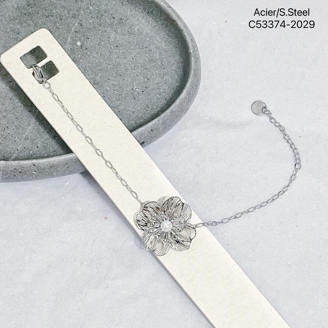 Bracelet Bella orne d’une fleur avec s perle en acier inoxydable.