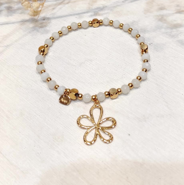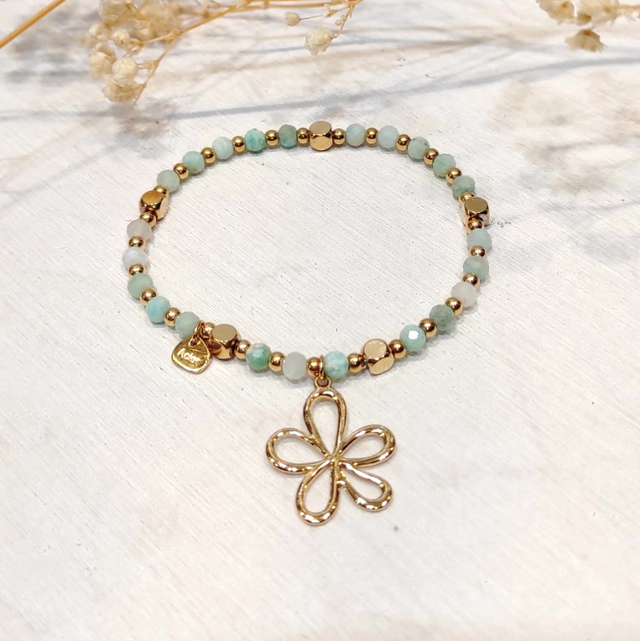 Bracelet élastique fleur Menia en acier inoxydable doré avec pierre naturelle.