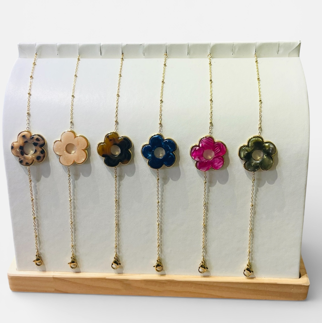 Bracelet flora aux multiples reflets en acier inoxydable doré.