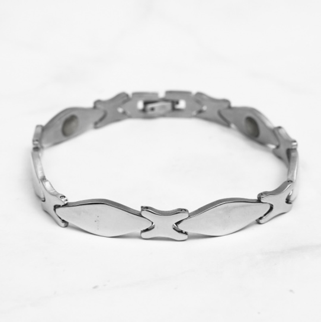 Bracelet homme à acier inoxydable argenté.