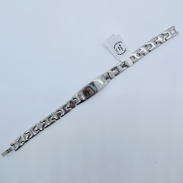 Bracelet avec plaque à graver homme an acier inoxydable argenté