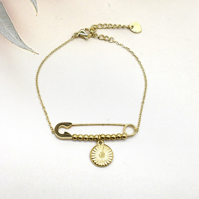 Bracelet trombone avec Pampille en acier inoxydable.