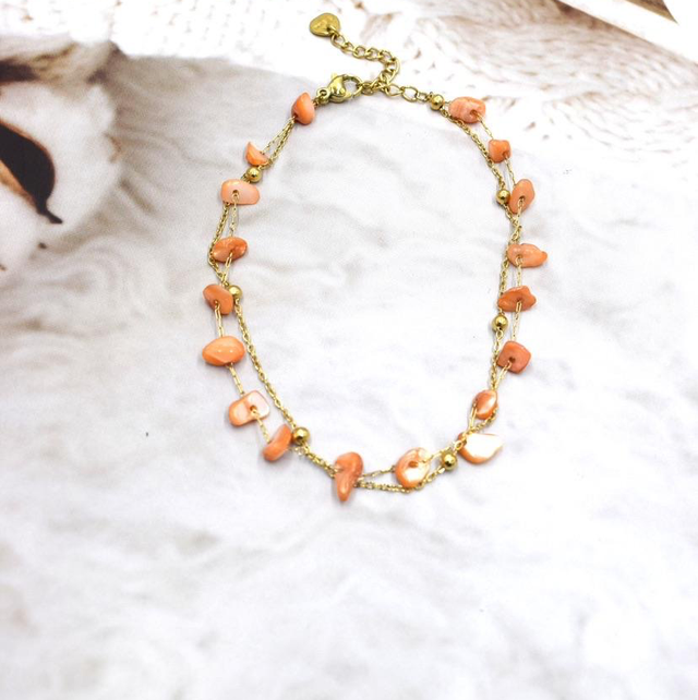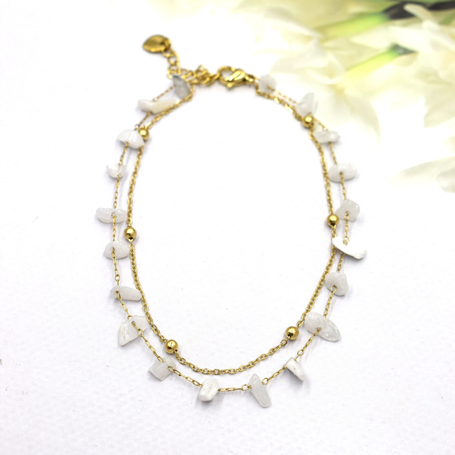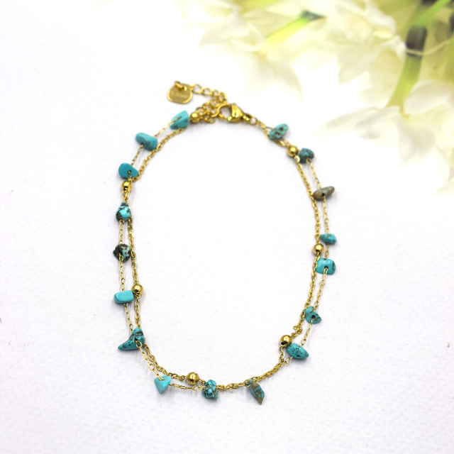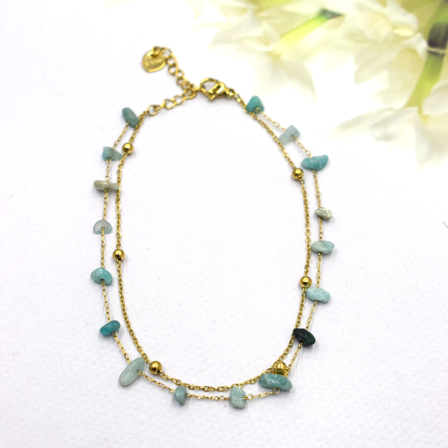 Chaîne de cheville double avec pierre en acier inoxydable doré.