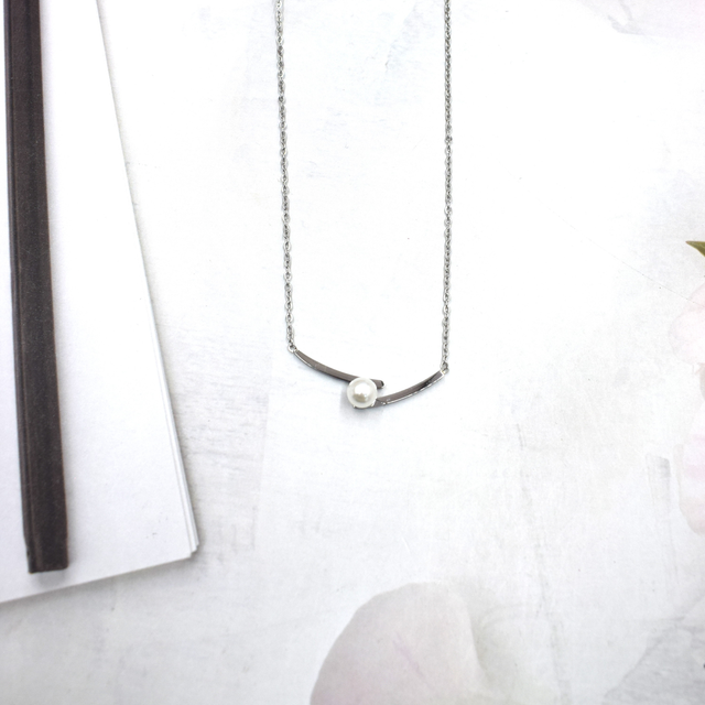 Collier croisé perle blanble en acier inoxydable.