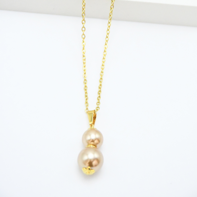 Collier double perle en acier inoxydable doré.