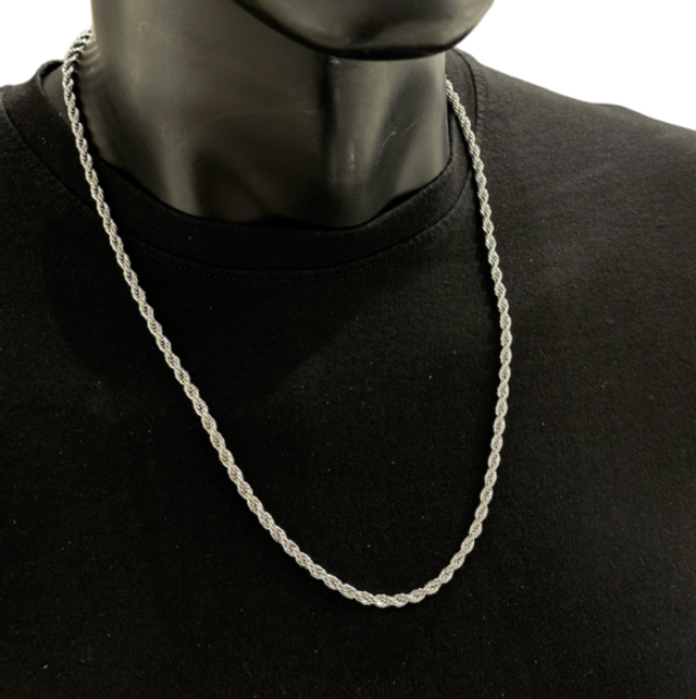 Collier homme maille corde en acier inoxydable.
