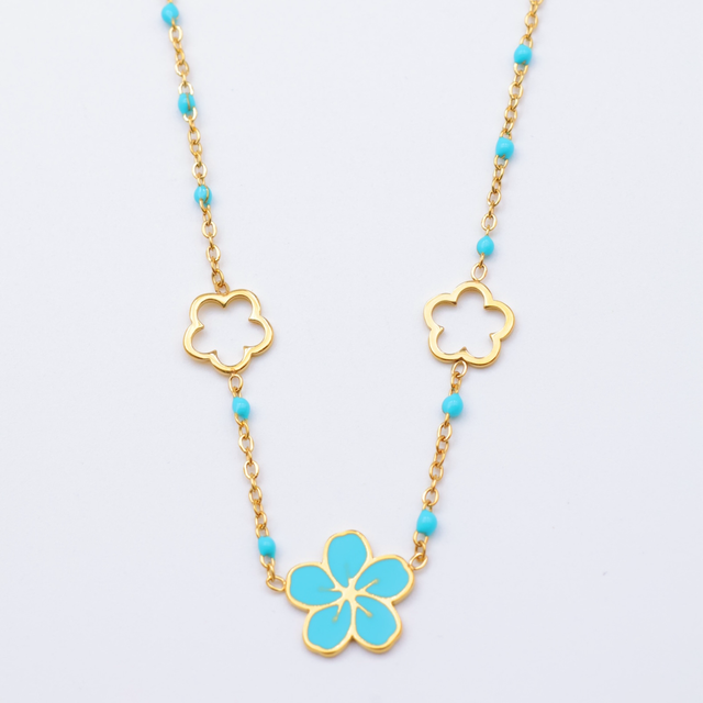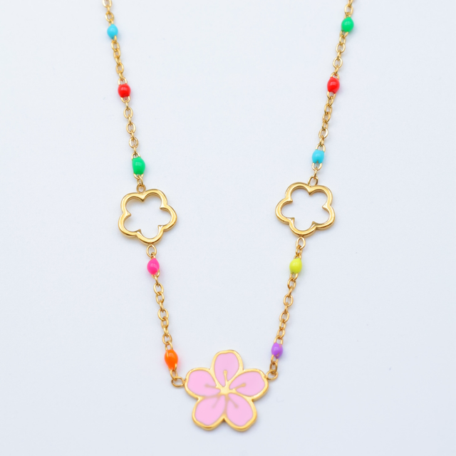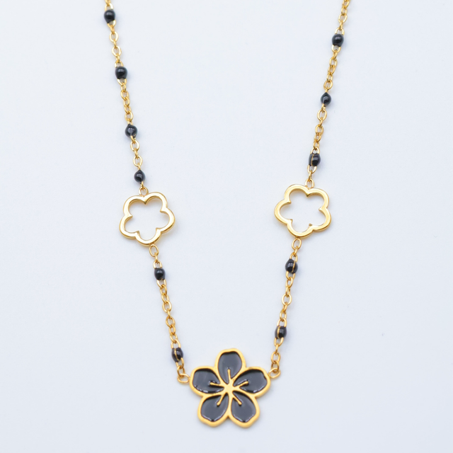 Collier inspi Gigi avec fleurs en acier inoxydable doré.