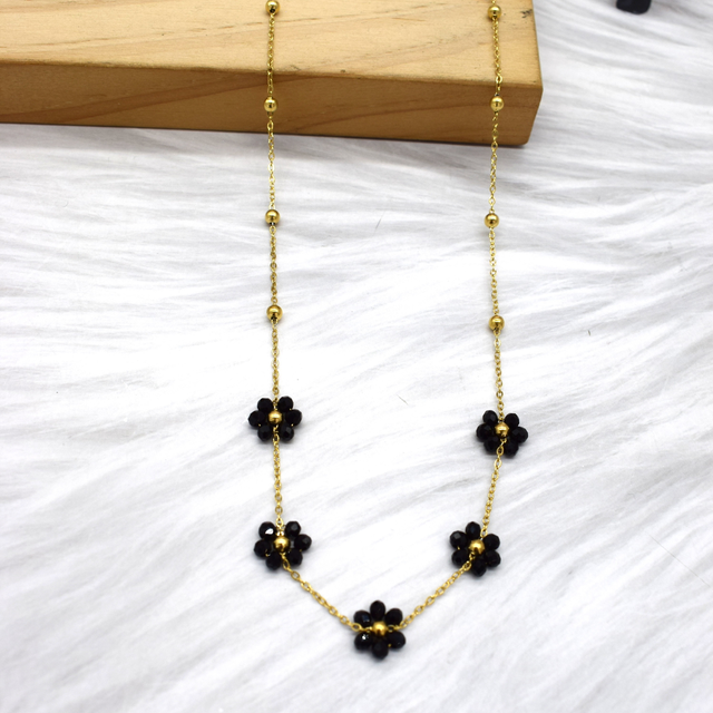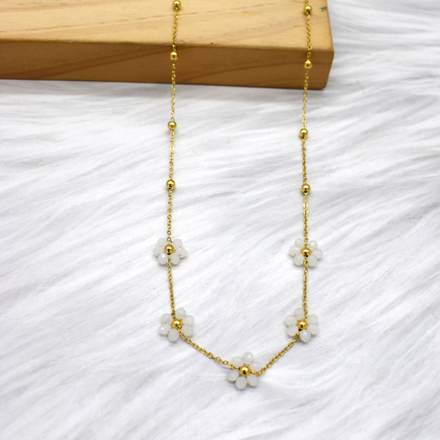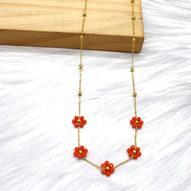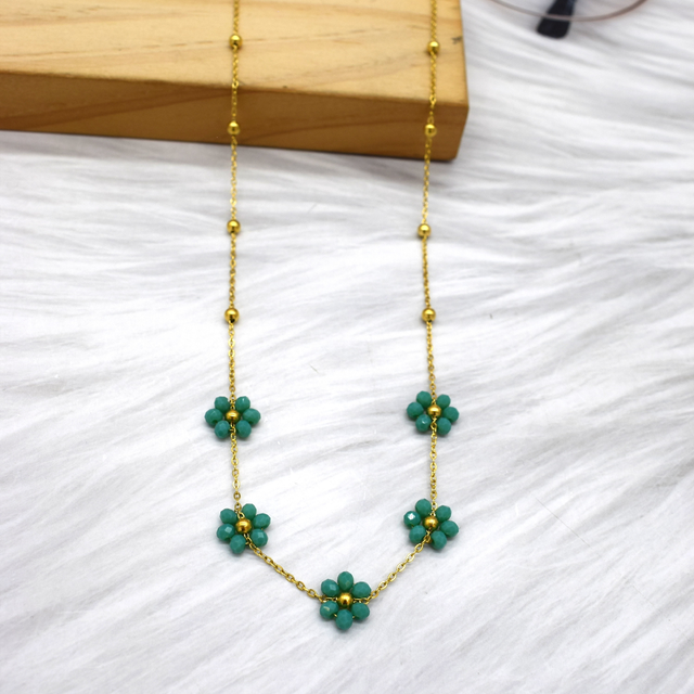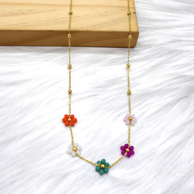 Collier marguerite colorées en acier inoxydable doré.