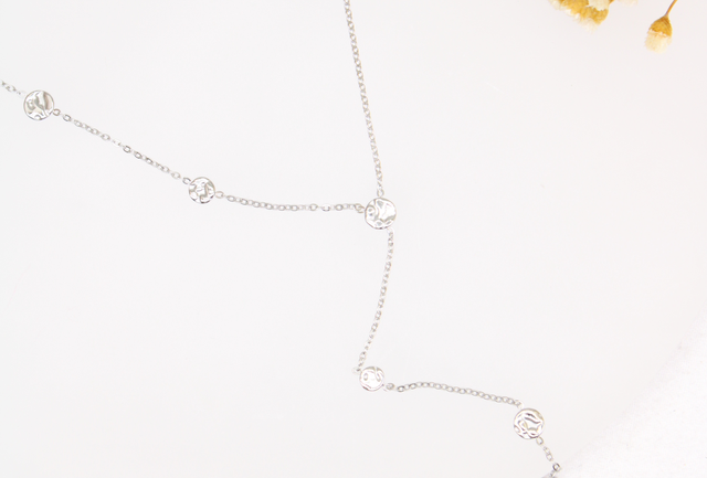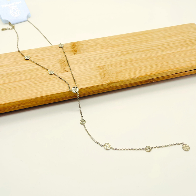 Collier Y a pampilles martelées en acier inoxydable.