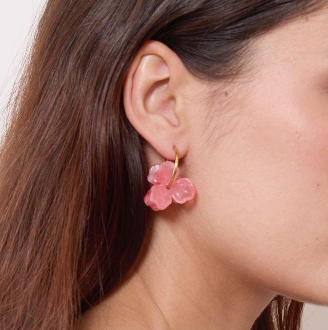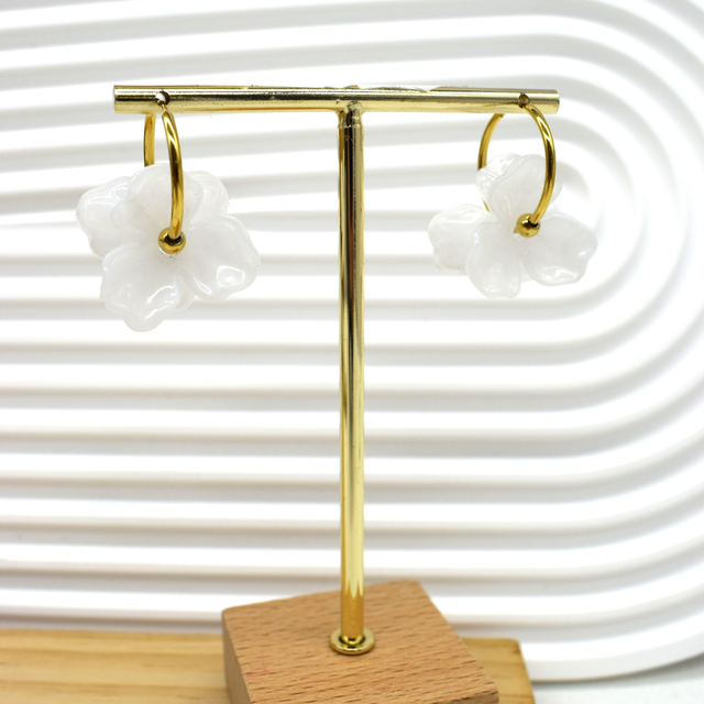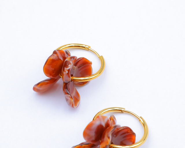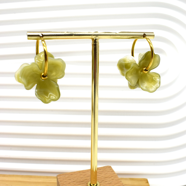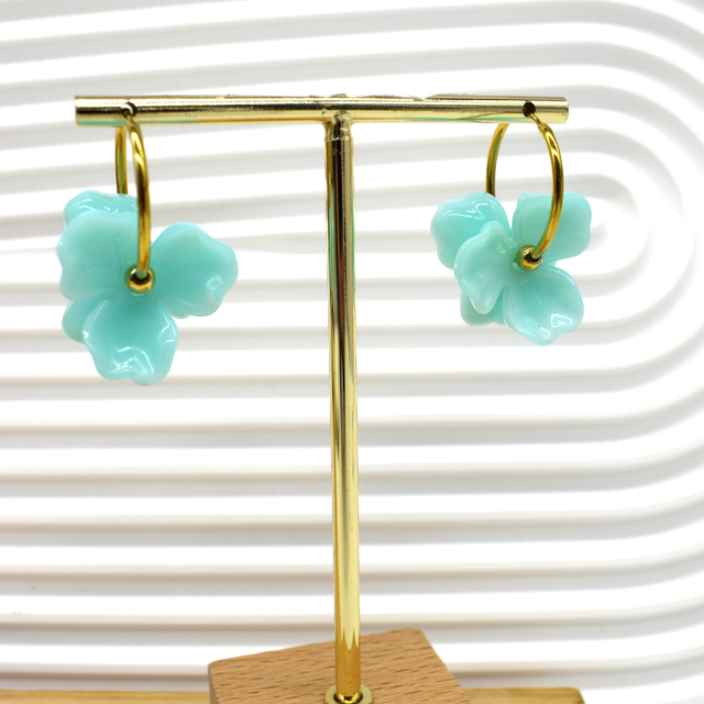 Boucle créole fleur en résine en acier inoxydable doré.