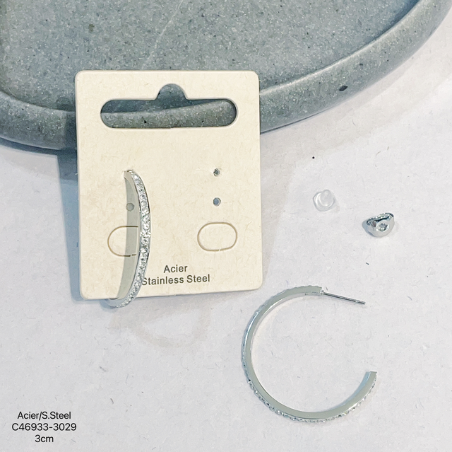 Demi créole strass en acier inoxydable.