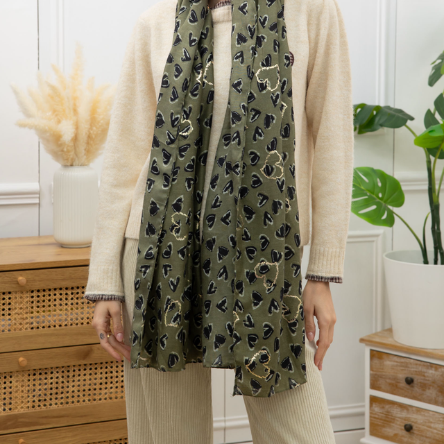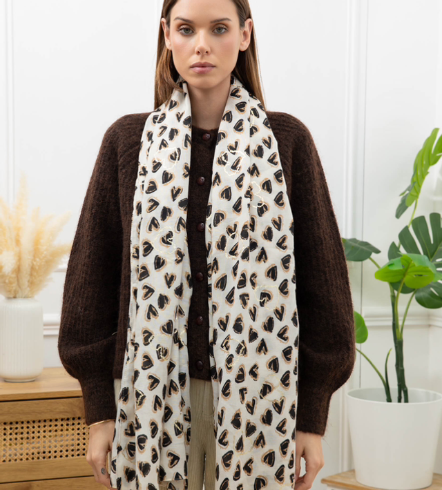 Foulard imprimé cœur avec dorure.