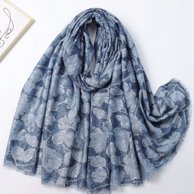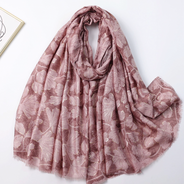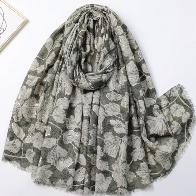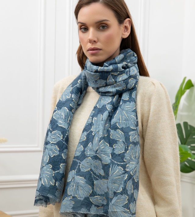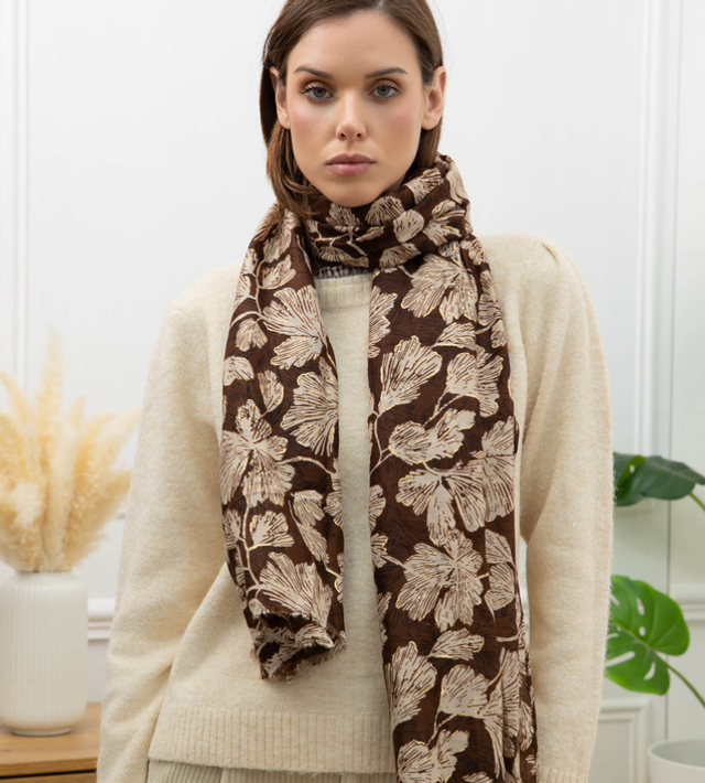 Foulard imprimé feuilles avec dorure