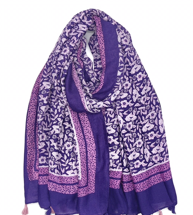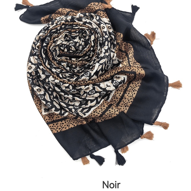 Foulard imprimé fleur avec pompon