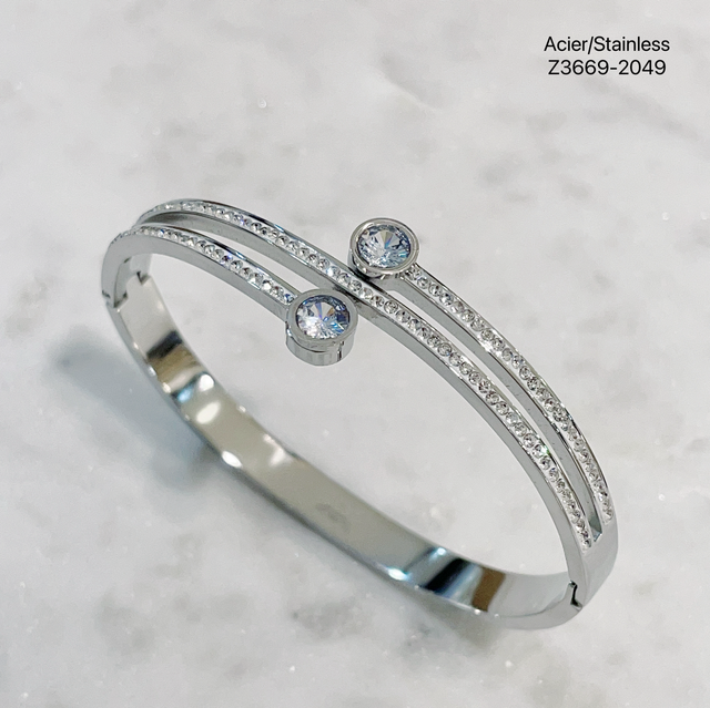 Jonc en acier inoxydable avec strass.