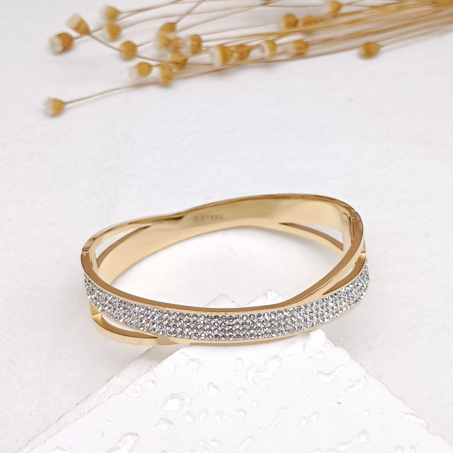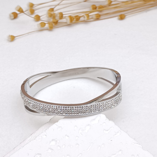 Jonc bande strass en acier inoxydable.