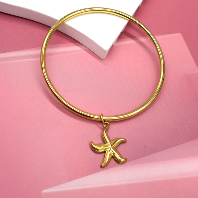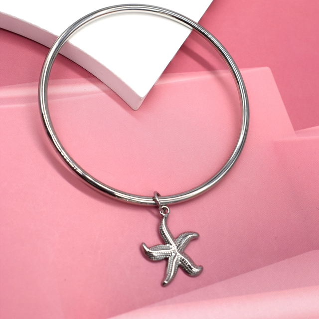 Jonc rigide en acier inoxydable avec pampille étoile de mer.