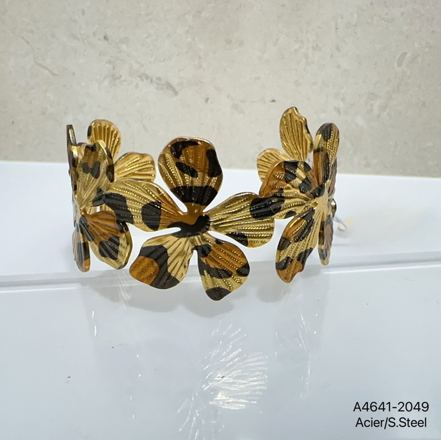 Jonc léopard réglable en acier inoxydable doré.