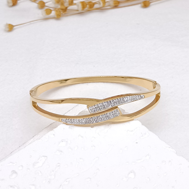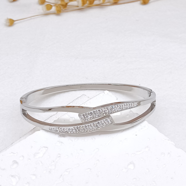 Jonc croisé strass en acier inoxydable.