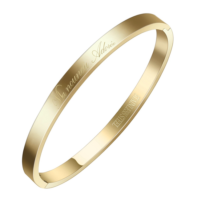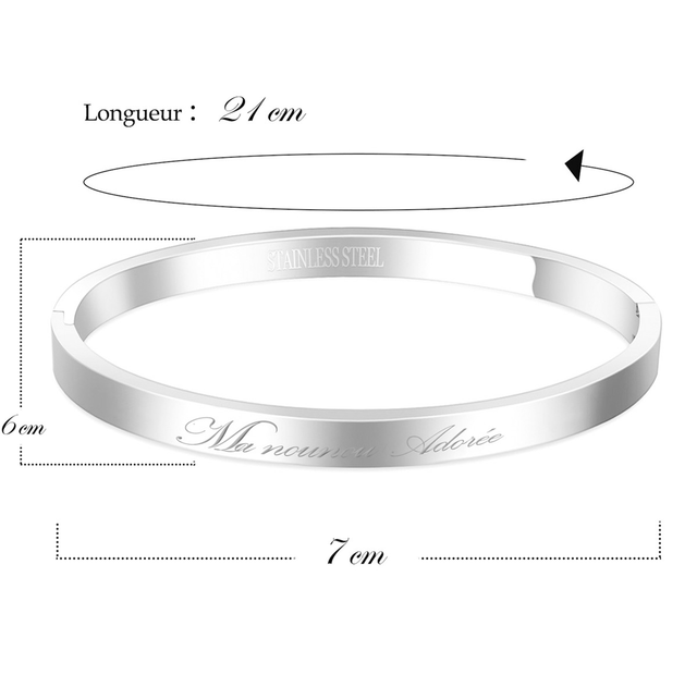 Jonc message graver MA NOUNOU ADORÉE en acier inoxydable.
