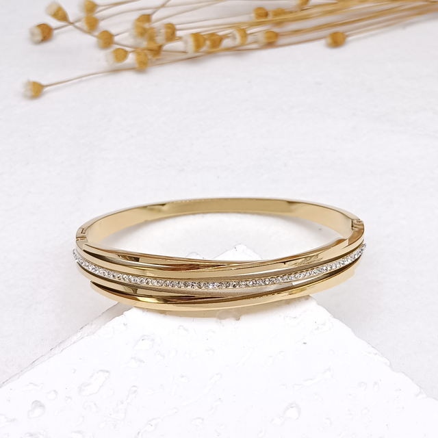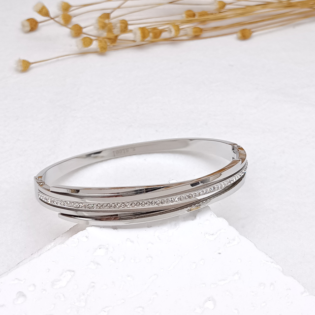 Jonc croisé strass en acier inoxydable.