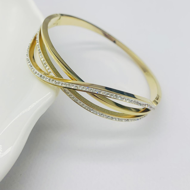 Jonc entrelacer strass en acier inoxydable.