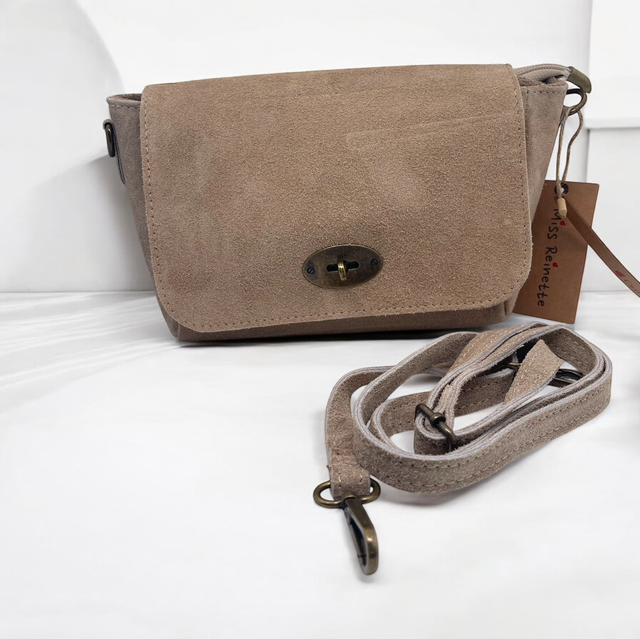 Sac en cuir véritable avec sa lanière assortie.