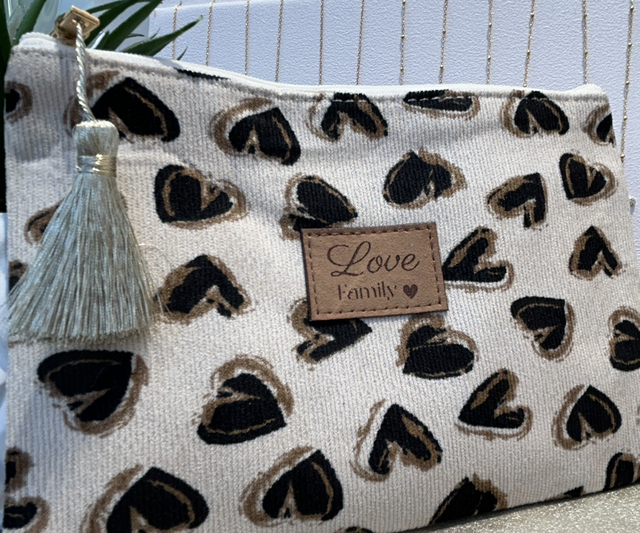 Pochette coeur léopard -tissu moumoute